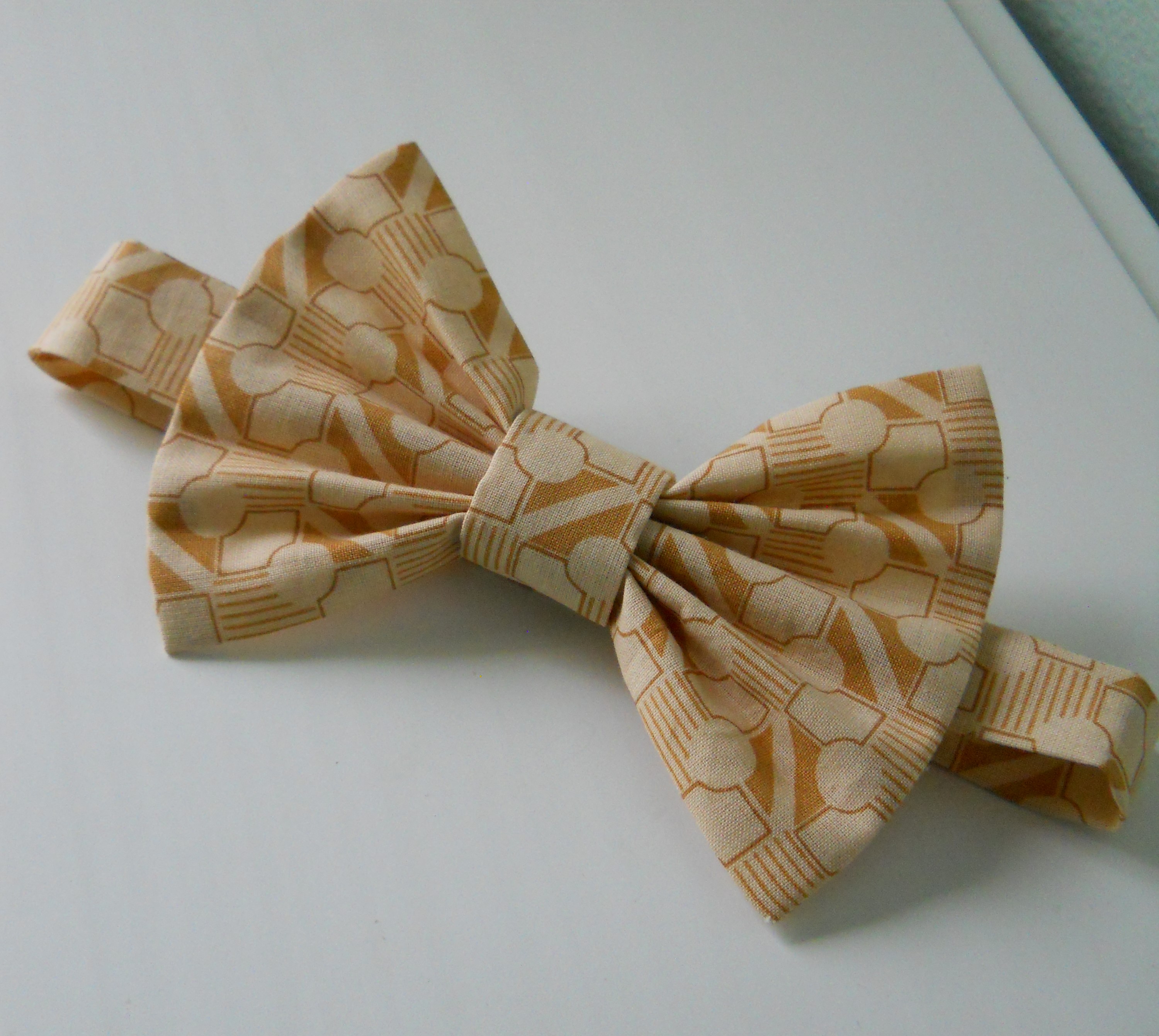 Bowtie features an adjustable neck tie with velcro at the ends. They can be made to fit from newborns to the man in your life. Fabric can be changed to customize the look you want. This listing is for one (1) Golden Bowtie. You will only receive one (1) bow tie with this order. All bowties are ready to ship and shipping is included in the listing price. What you see in the photos is the bowtie you will receive.