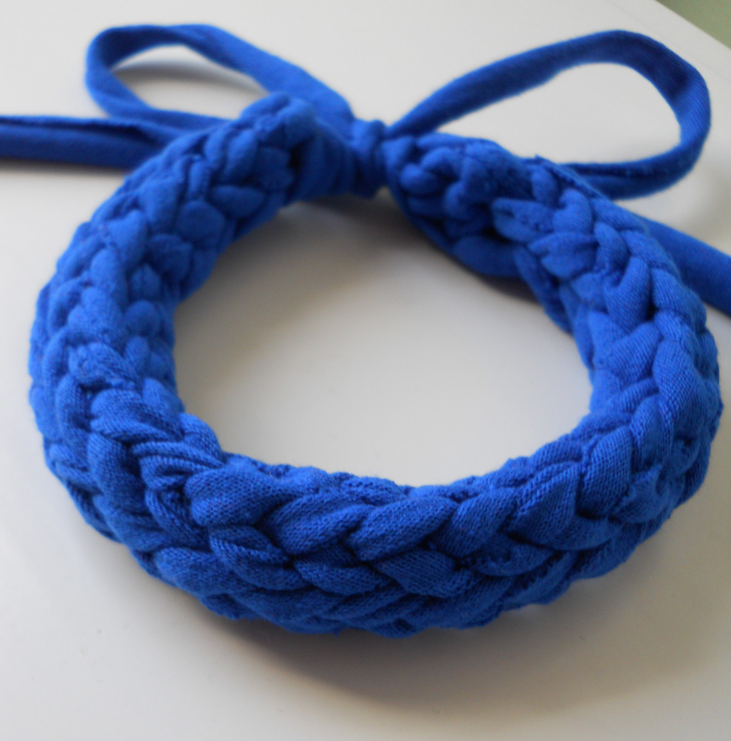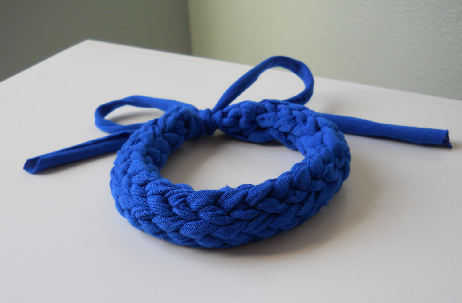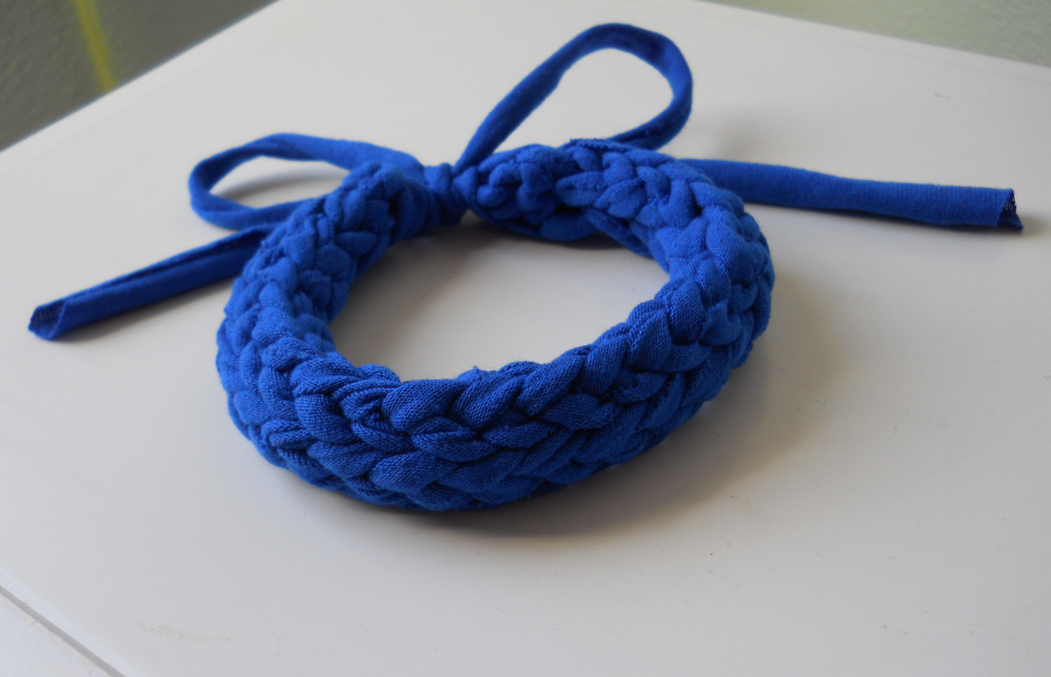 Blue Chunky Crocheted T-Shirt Yarn Bracelet